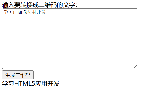 本节将开发一个可以把任意文字转换为二维码的HTM5应用。